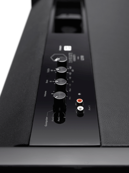 This dock has dual alarm clock radio, bass, treble, balance controls and a video out jack. It also comes with a separate active subwoofer for the bass. The remote control for the dock could control your iPhone/iPod.