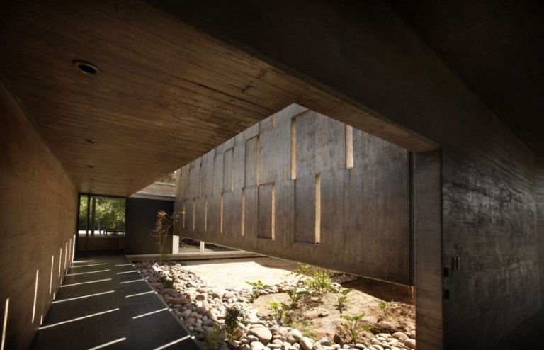 A Beautiful House With A Courtyard In Mendoza. This house is called Casa Codina and was created by A4estudio. It is located in Mendoza, Argentina. The project was made green, optimizing weather conditions. The house is built around a big central courtyard, the main spaces are opened to a larger garden. The public area are oriented to the north, the private spaces are oriented to the east and service areas – to the west. Everything in the house is made from the point of view of natural ventilation and moving of the air masses due to the hot climate in Argentina. The structure of the house is built of concrete, wood, aluminum and different boards. The wood is unusual, it’s called guatambu. Some walls can change their look according to the light.